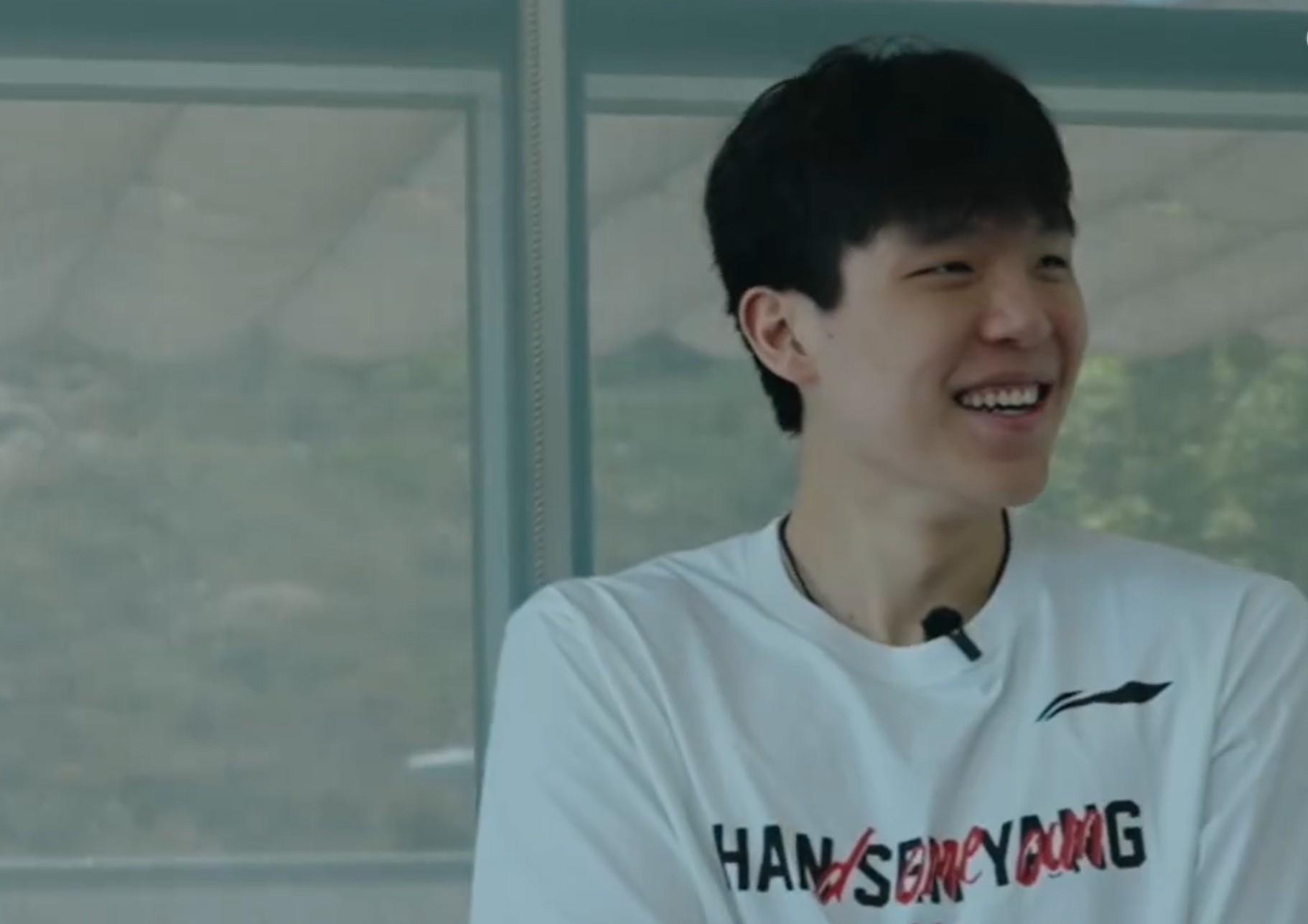 我会说一些英语,然后和他们打一些手语(杨瀚森展示了一下他新学的手语,意思是谢谢)
