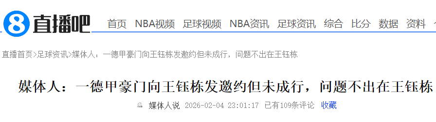 北京时间2月4日晚上,据媒体人卢基琳的最新爆料,称一家德甲豪门冬窗向王钰栋发出诚意邀约,但最终未成行,具体信息是:“现在转会窗关了,U23国足的比赛也结束了,可以说一下了,在这个冬窗,一家德甲豪门俱乐部给王钰栋发出了邀约,还是带着诚意的,有转会费,也有对未来的规划,不过最终还是没有成行,问题不出在王钰栋,还有其他的种种原因。”