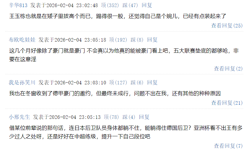 ——以王玉栋实力能在哪个队打个主力轮换别说这些队了,他在圣保利,美因茨,这些队打个主力替补都打不了信不信