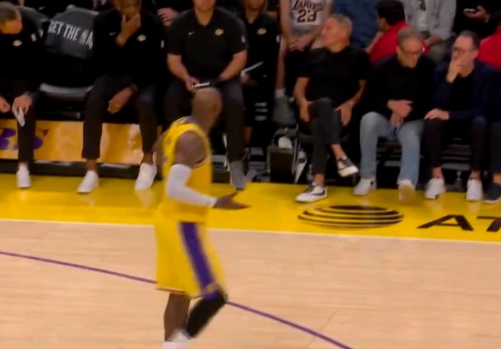麦克风捕捉到詹姆斯对着教练组大喊:“知道八村现在几个犯规了吗?没人知道吗?我只是想确认下他别陷入犯规麻烦。有必要的话,我来防约基奇。”