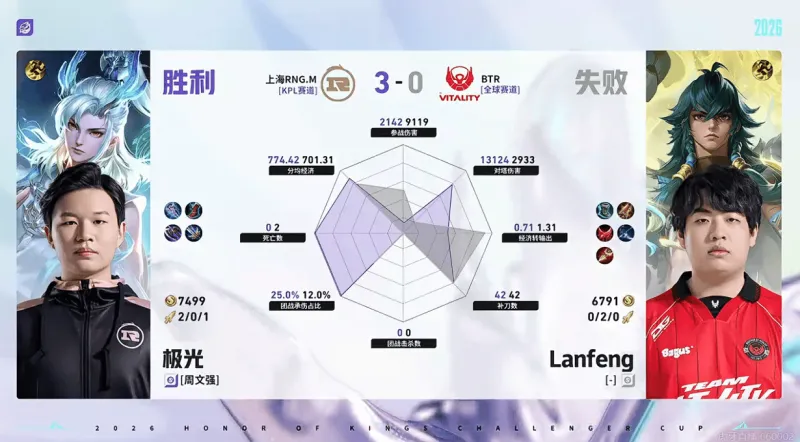开云电子-RNG/BTR第三局数据对比:樱花马超爆炸数据带飞全场